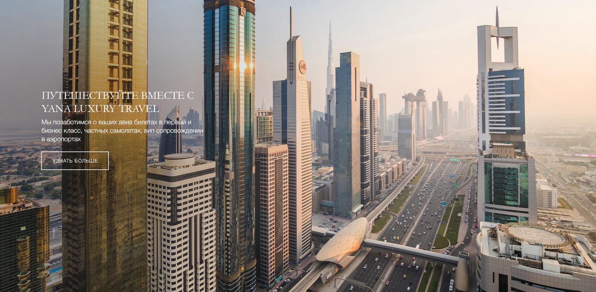 Yana Luxury Travel является одним из лидеров в сфере путешествий премиум класса. Если вы желаете отправиться в незабываемый вояж, посетить лучшие курорты мира, отдыхать в самых дорогих и изысканных отелях любой страны, тогда доверьте свой отдых нам и мы обязательно подберем для вас лучший вариант для семейного, индивидуального, корпоративного или бизнес туризма. У вас будет возможность насладиться всеми преимуществами luxury-отдыха, восторгаясь красотой экзотической природы, величием городов, великолепием пляжей, живописностью заснеженных гор и высочайшим уровнем обслуживания. Все хлопоты по организации вашего отдыха мы возьмем на себя. Вам достаточно просто