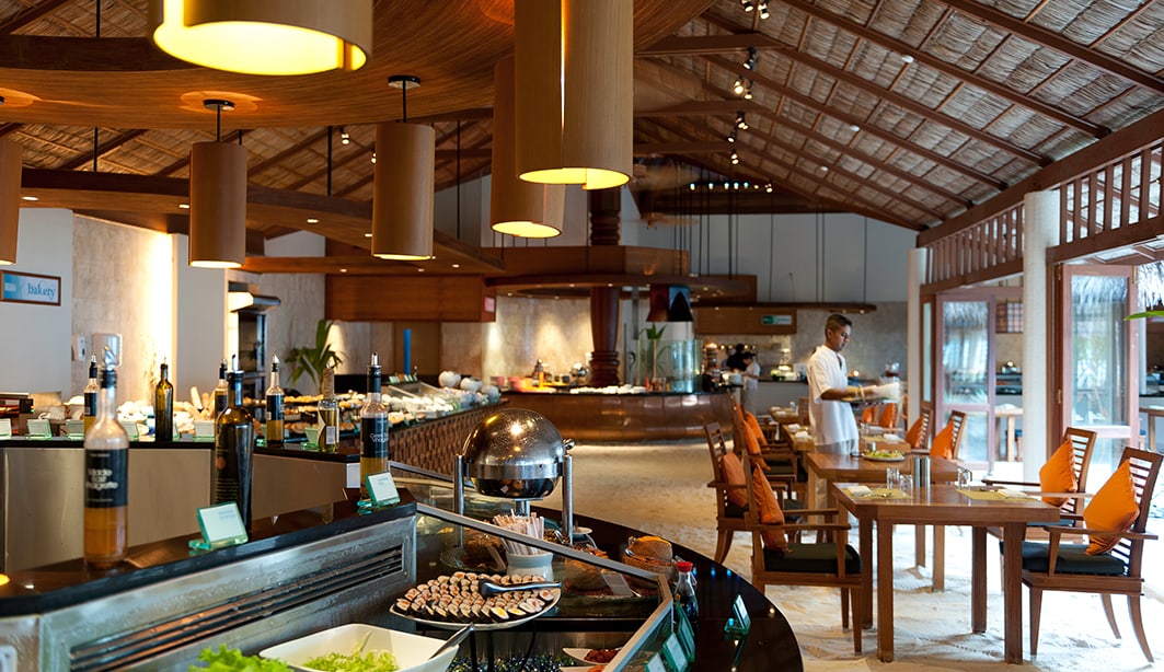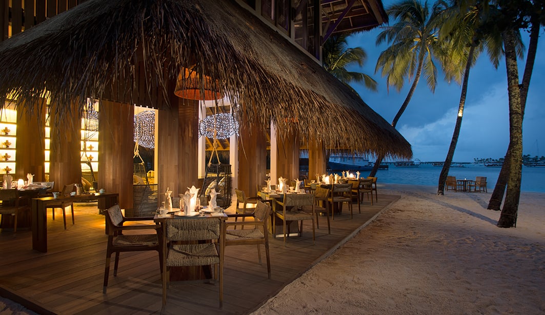 - Sunset Grill — установленный на сваях в 50 метрах от берега над коралловым рифом предлагает выбор свежайших морепродуктов и импортированного мяса, сочетающегося с тщательно подобранным винным сетом.