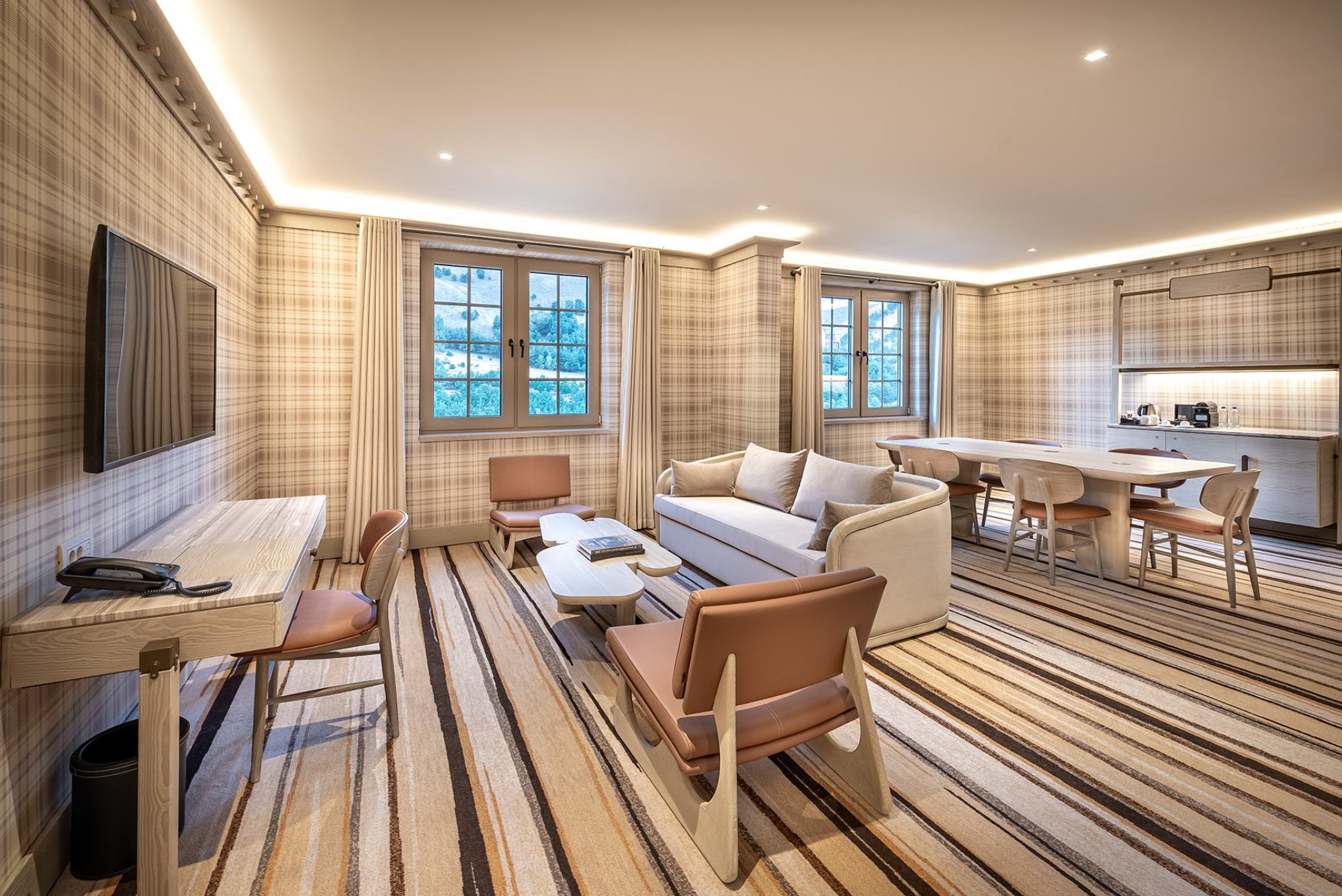 Площадь 70 кв. м. Вид на горы и город. Просторный и комфортабельный люкс с гостиной, одной спальней и двумя ванными комнатами.