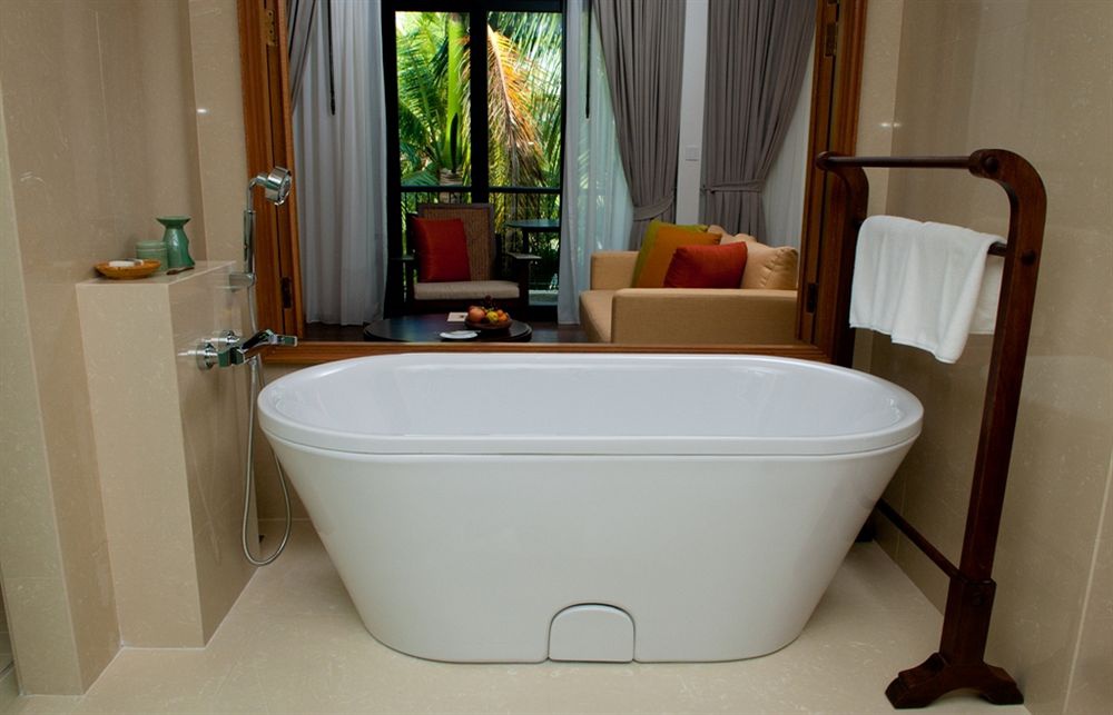 Anjung Senja: — 100 м2. С видом на море; состоят из спальни, гардеробной, 2 гостиных (одна – с джакузи), ванной комнаты с ванной и душевой кабиной и 2 балконов.