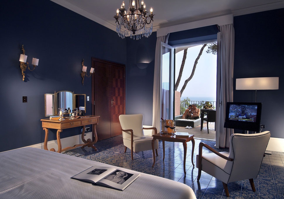 Royal Suite: от 90 м2, расположен в здании Royal, состоит из спальни (35 м2), гостиной (28 м2), двух ванных комнат, живописного балкона или террасы с джакузи или каскадным душем с морской водой, с видом на залив Lacco Ameno.