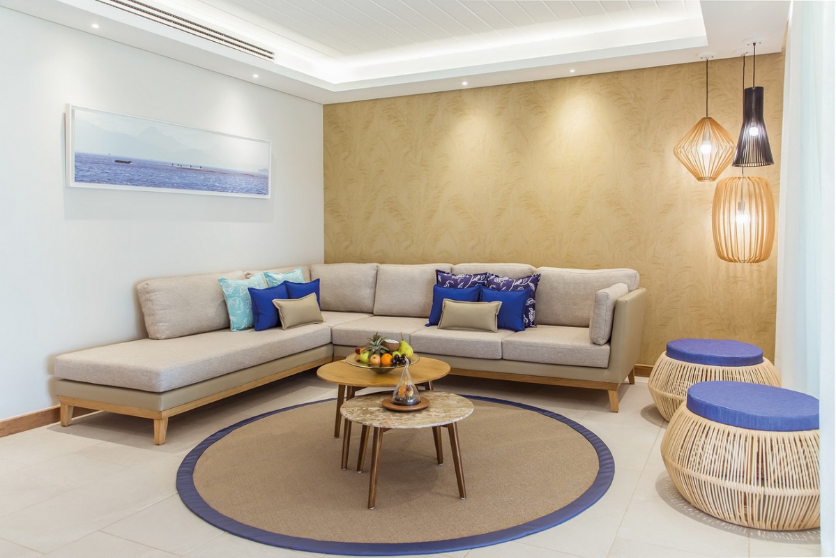 147 кв.м. Расположены на втором этаже рядом с пляжем, состоят из спальни, гостиной с обеденной зоной, ванной комнаты, гостевой туалетной комнаты, просторной террасы с видом на море и выходом к пляжу. Гостям этого сьюта предлагаются эксклюзивные услуги, включая персональный тент и шезлонги на пляже во время всего пребывания. Размещение: 2 взрослых и 1 ребенок.