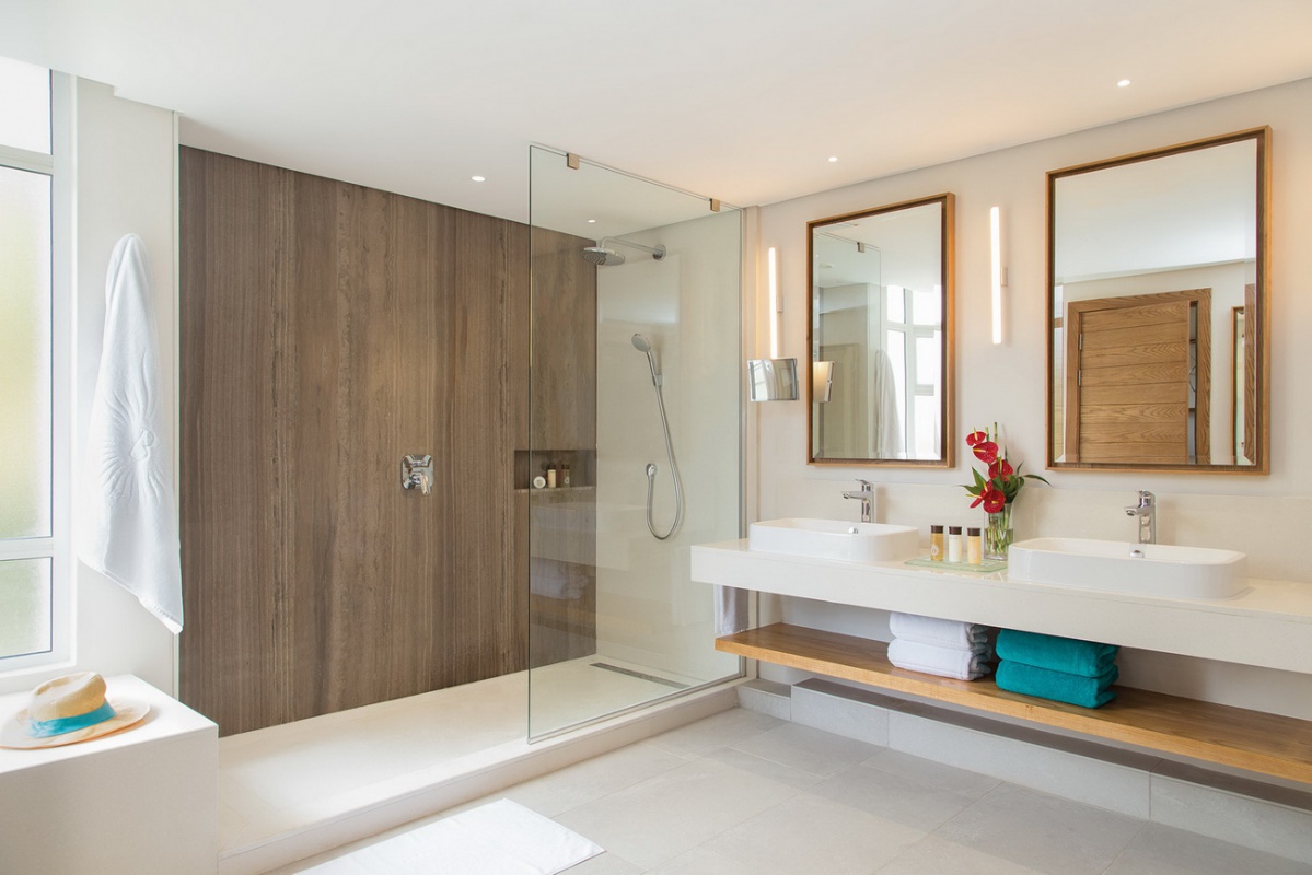 94 кв.м. Номера окружены прекрасными природными пейзажами – с одной стороны возвышается потрясающая гора Морн Брабант, с другой - пляжи. Состоят из спальни, гостиной, ванной комнаты с душевой кабиной, ванной, гардеробной, просторной террасы с видом на океан. Размещение: 2 взрослых и 1 ребенок.