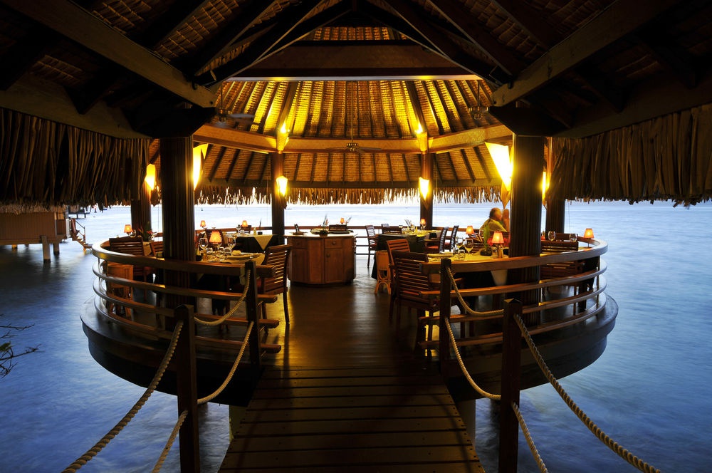На открытой кухне проходит шоу приготовления национальных блюд на глазах гостей, три раза в неделю ужин совмещен с программой Les Grands Ballets de TAHITI.