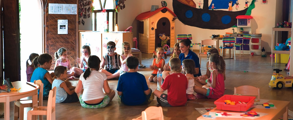 На территории курорта работают 3 детских клуба (в каждом три возрастных группы) под управлением компании из Великобритании Worldwide Kids company: - детские ясли для малышей от 4 месяцев до 4 лет (за дополнительную плату); - мини клуб для детей 4-12 лет с утренними и вечерними развлекательными программами и играми (бесплатно); клуб для тинейджеров с 13 до 16 лет, специально организованные мероприятия в высокий сезон (бесплатно).
