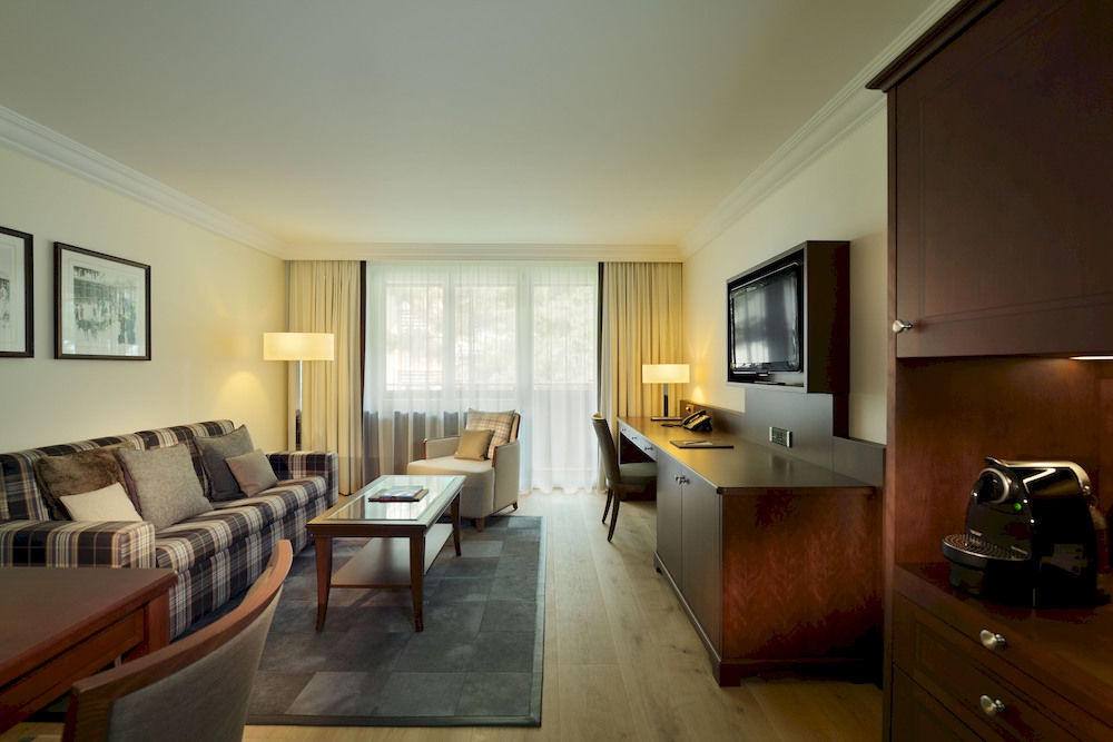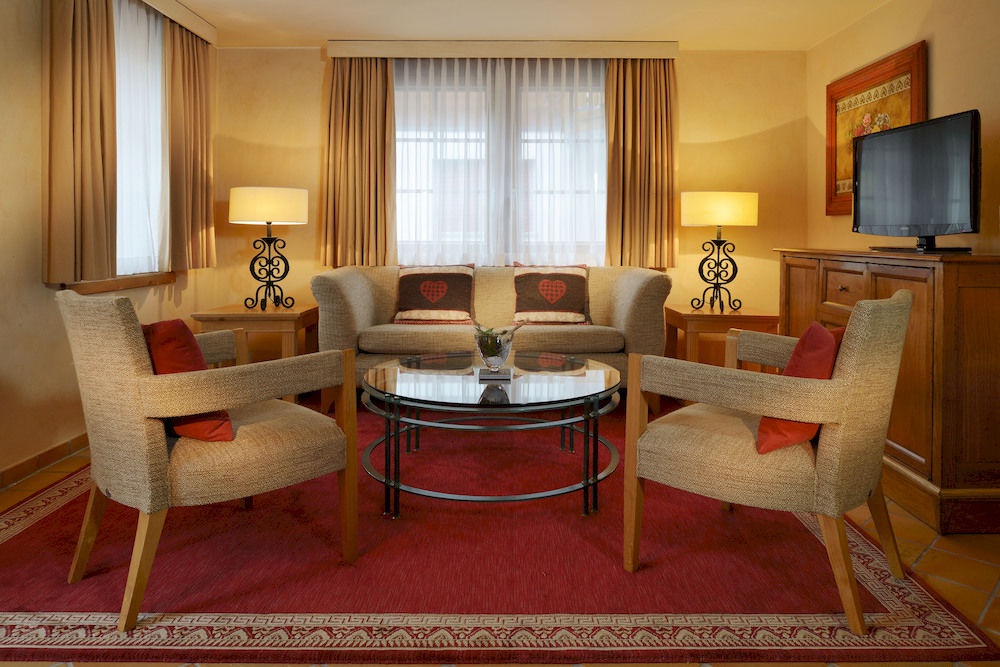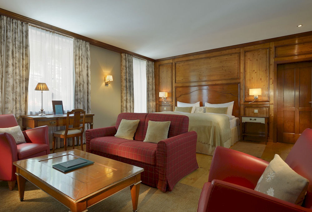 1-Bedroom Suite: 43-50 м2. Состоит из спальни, отдельной гостиной, ванной комнаты, балкона или террасы с видом на горную цепь Gornergrat (восточная сторона) или на вершину Matterhorn (южная сторона). Некоторые номера имеют камин, некоторые – двухуровневые. Максимальное размещение - 3 взрослых или 2 взрослых + 1 ребенок.
