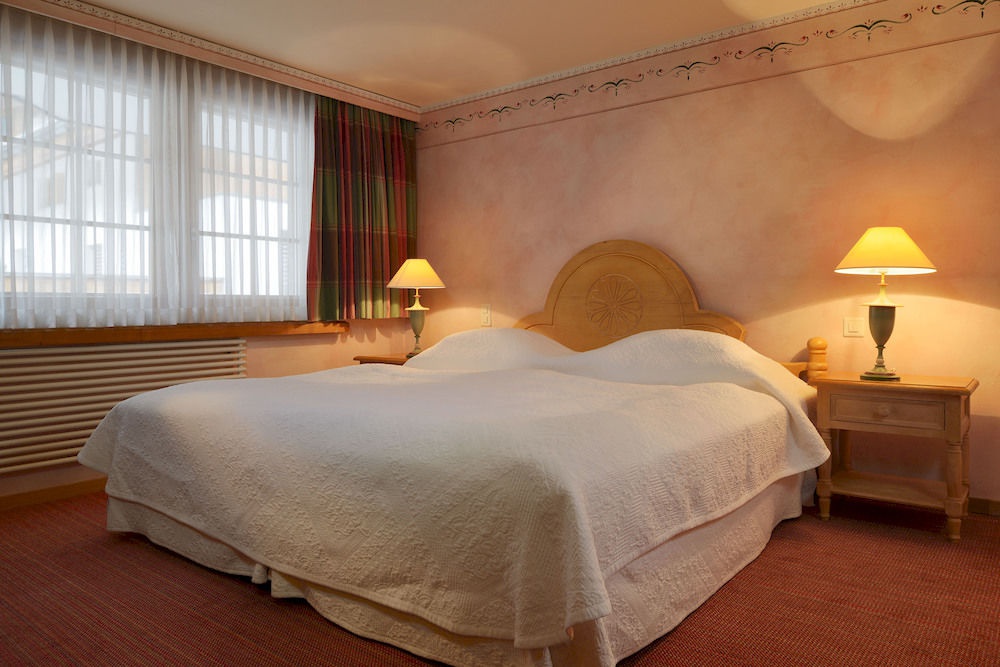 Standard Double/ Twin Room: 18-22 м2. Состоит из спальни с кроватью double или двумя кроватями twin и письменным столом, ванной комнаты, выходит на горную цепь Mischabel (северная сторона) или вершину Matterhorn (южная сторона). Некоторые номера имеют балконы. Максимальное размещение - 2 взрослых.
