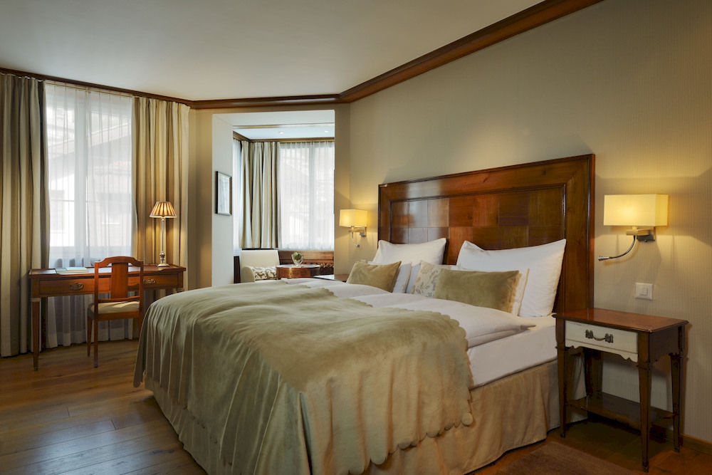 Deluxe Twin-Bedded Room: 28-30 м2. Состоит из спальни с кроватями twin и большой гостиной зоны, ванной комнаты, балкона или террасы, большинство - с видом на вершину Matterhorn. Максимальное размещение - 3 взрослых или 2 взрослых + 1 ребенок.