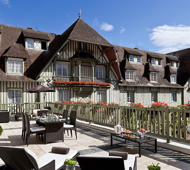 В центре Довиля, недалеко от лазурных вод Ла-Манша и рядом с историческим казино расположился Normandy Deauville Barrière Франция. Отель является замечательным образцом англо-нормандской архитектуры и похож на чудесный сказочный замок, украшенный остроконечными башенками, фахверками из светло-зеленой древесины, изящными балкончиками и ставнями. В живописном нормандском дворике отеля разбит ухоженный сад с яблочными деревьями и глициниями, озаряющийся вечером нарядной иллюминацией казино Barrière de Deauville. А внутреннее убранство Normandy Deauville Barrière Франция воссоздает пышную роскошь Belle Epoque, атмосфера которой сохранена в изысканных номерах, шикарном ресторане, элегантном баре, холлах и конференц-залах отеля. Также к услугам гостей – бассейн и оздоровительный центр с парными и фитнес-залом, а для маленьких гостей открыты детский клуб и детский ресторан.