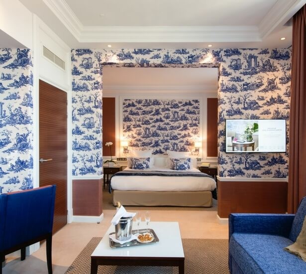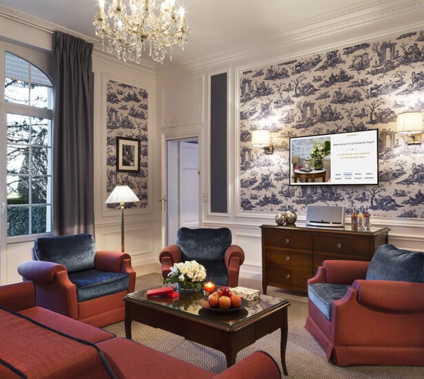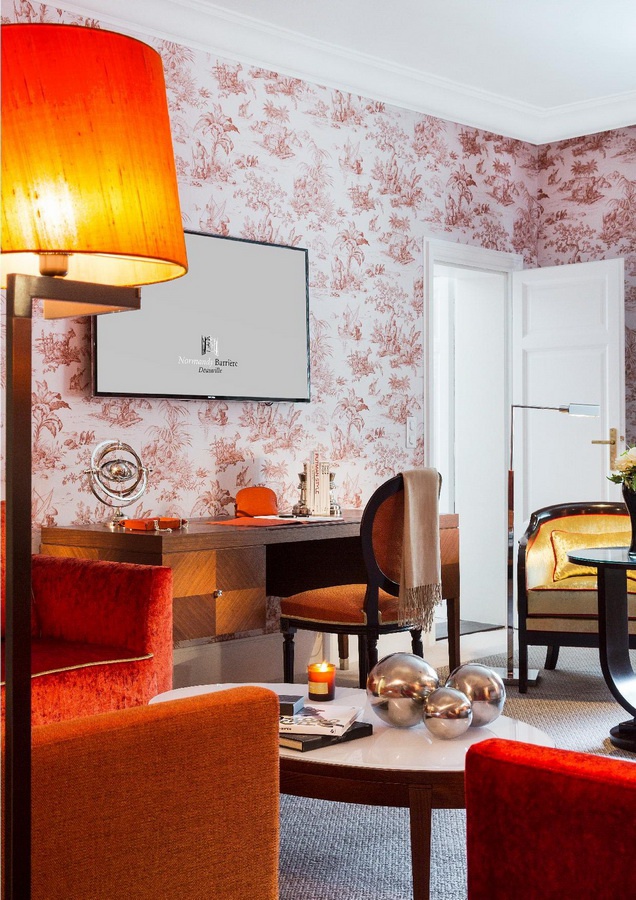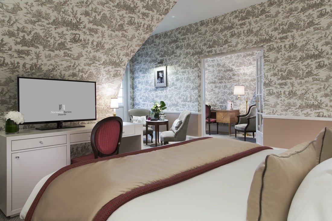 Интерьер 271 номера и люкса отеля Le Normandy, оформленный в стиле «туаль-де-жуи» и фахверковых конструкциях из светлого дерева, отреставрированный Натали Райан, выходит за рамки нормандской англо-нормандской элегантности.