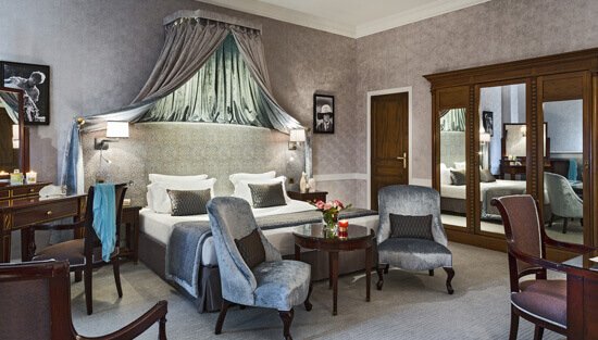 Удобство дивана, романтика большой кровати с балдахином, изысканная атмосфера. Junior Suite отвечает всем требованиям к пространству и изысканности.