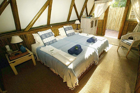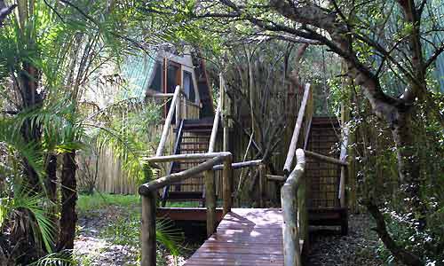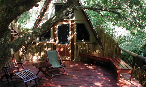 Отель расположен в северной части национального парка Квазулу-Натал (KwaZulu-Natal), который в местном масштабе известен как Мапутуленд (Maputaland). Здесь, между заливом Sodwana Bay и Sodwana Kosi находится область, которая была объявлена Участком Мирового Наследия. Комплекс отеля был построен в тропическом саду, позади первого ряда засаженных деревьями дюн, на 40 километрах изолированной береговой линии. Все это обуславливает уединение – редкую особенность, которая найдется в немногих местах на нашей планете. Деревянные шале treehouse подняты на сваях в тени деревьев. В отеле есть уютный ресторан, паб, собственный бассейн и дайвинг-центр.Расположение