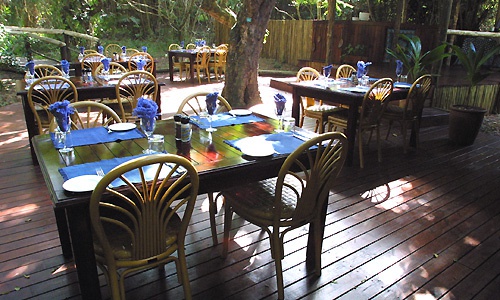 В ресторане отеля, расположенном у бассейна, и, частично, - на открытом воздухе, под огромным красным деревом, готовят блюда южноафриканской кухни.Для молодоженов