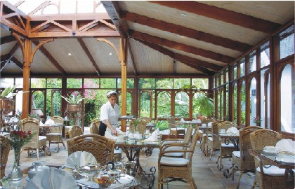 К услугам гостей ресторан, известный превосходным качеством обслуживания, здесь подают блюда европейской и местной кухни. Устраиваются ужины при свечах в окружении старинной резной мебели, подаются вина мирового класса. Ресторан имеет открытую террасу для барбекю, зал-библиотеку и изящную оранжерею, где сервируют столики. Есть винный погреб и бар.