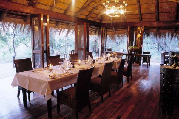 В лагере предлагаются блюда африканской кухни, лучшие домашние вина и пиво местных сортов. Для завтраков и ланчей открыта общая обеденная комната в главном здании, ужин готовят и подают в открытом дворе boma у большого костра при свете звезд. Завтрак можно заказать в номер, по желанию гостей организуются пикники в буше. Предлагаются специальные диетические меню, кошерные блюда (по предварительному запросу).