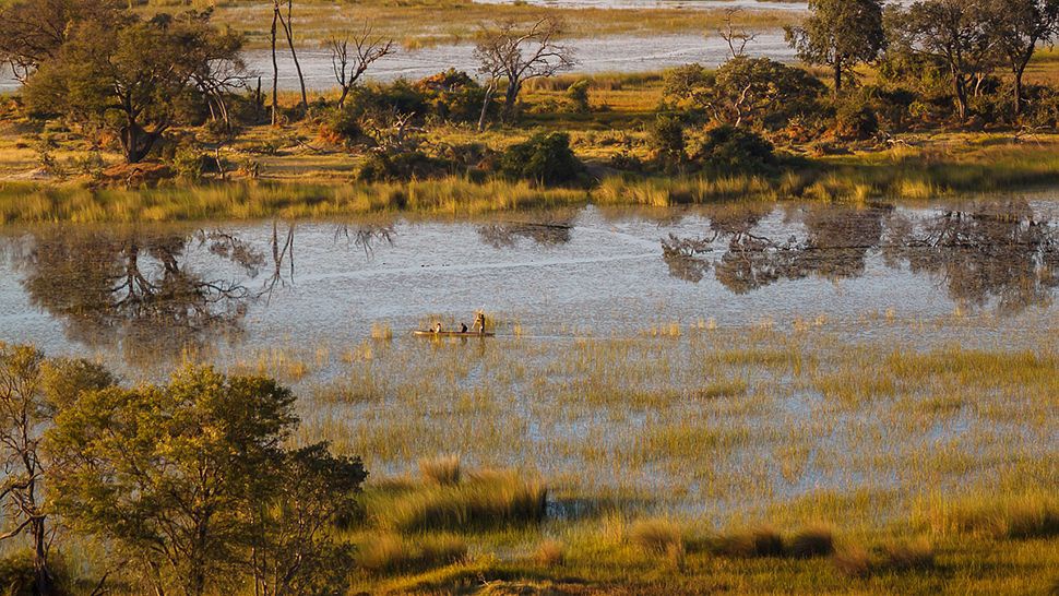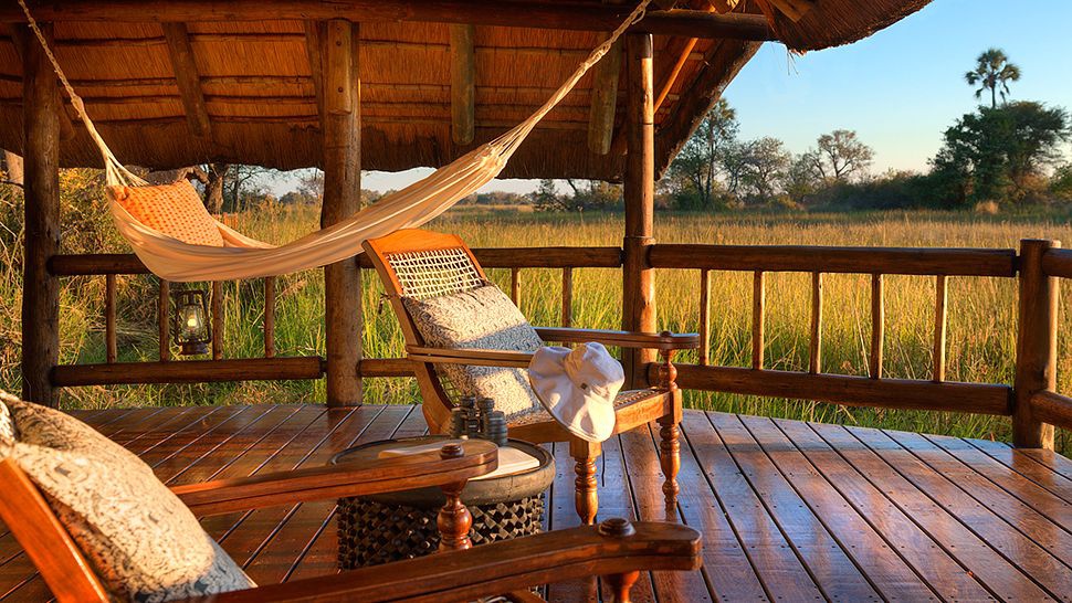 Затерянный среди множества рукавов дельты реки Окаванго и расположенный на одном из небольших островов под названием Ксаксаба (Xaxaba), этот гостеприимный отель-лодж принимает множество гостей со всего мира. А славится он высоким уровнем сервиса, профессиональным проведением экскурсий по заповеднику, а также знаменит своим баром, который назван в числе самых романтических баров мира. Двенадцать отдельно стоящих бунгало с высокими террасами (многие с видом на речные протоки) окружены густой растительностью, среди которой особо выделяются экзотические пальмы Илала, похожие на гигантские отцветшие одуванчики. Опытные гиды отеля проведут вас потайными лесными тропами, организуют лодочную экскурсию, покажут местных обитателей и раскроют секреты их жизни. Однако помните, что водные экскурсии возможны только в сезон высокой воды (с апреля по октябрь), а во время низкого уровня воды в реке (с декабря по апрель) организуются экскурсии на джипах. Полюбоваться местными красотами с борта вертолета можно в течение всего года.