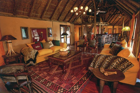 В главном шале в центре лоджа размещаются гостиная, обеденная комната и бар. Обеденная комната обставлена креслами с резными спинками, бар оформлен в приятных теплых тонах и декорирован традиционными аксессуарами бушменов, потолки помещений украшены изысканными люстрами в колониальном стиле. Рядом с главным зданием располагается дворик «бома», в котором, по старинной африканской традиции, подают ужин, приготовленный на большом костре под открытым небом. Неподалеку размещается большой открытый бассейн.