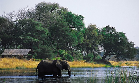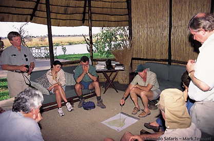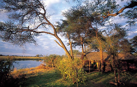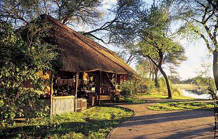Лодж расположен на берегу реки Квандо, в получасе перелета от города Мауна.