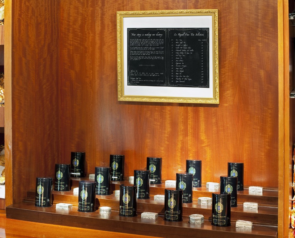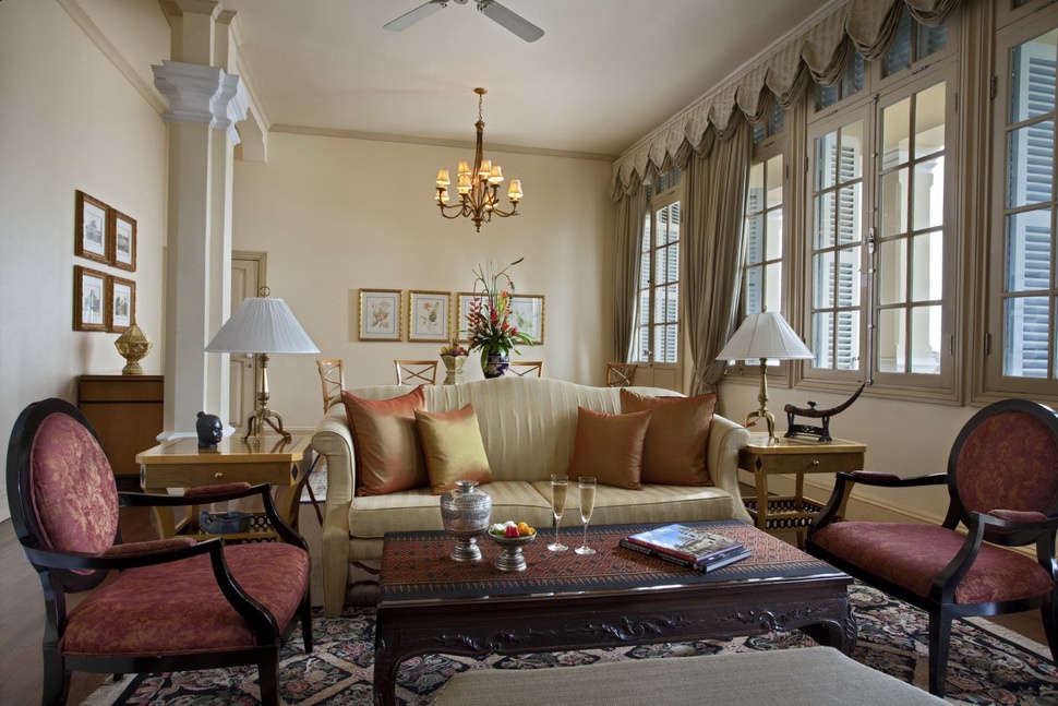 Le Royal Suite — расположен на 4-м этаже, с видом на сад, состоит из 2 спален, гостиной , столовой, ванной комнаты, украшен предметами искусства.
