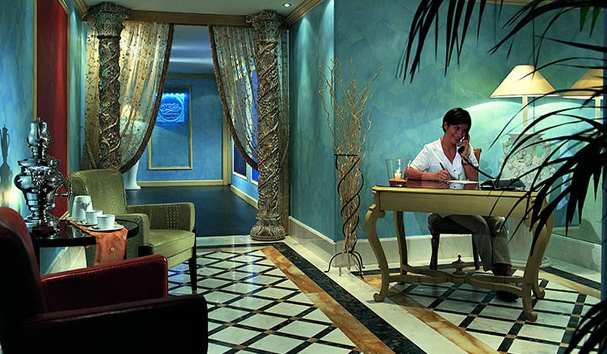 Номер Suite без вида на море. Апартаменты Suite с элегантным интерьером, двумя двухспальными кроватями и ванной комнатой, отделанной мрамором. Без балкона и без террасы, окна номера выходят на внутренний двор. Номера Suite оснащены индивидуально управляемым кондиционером воздуха, ЖК-телевизором со спутниковым телевидением и платными каналами, высокоскорстным Wi-Fi-соединением, мини-баром, сейфом, банным халатом, феном и туалетными принадлежностями.