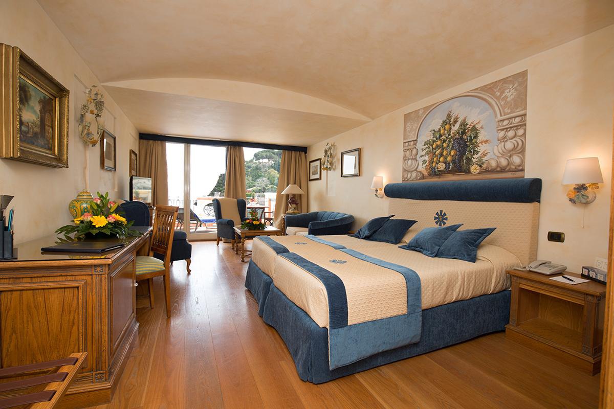 Улучшенные номера с видом на море имеют большую террасу, оборудованную стульями, столом и удобным шезлонгом с прекрасным видом на море. Все номера оборудованы роскошной ванной комнатой с мраморной столешницей с двойной раковиной, кондиционером с индивидуальным управлением, телефоном с прямым набором, кофеваркой, телевизором с плоским экраном и спутниковыми каналами, платным телевидением, Wi-Fi, мини-баром, сейфом, халатом, феном, тапочками и набором туалетных принадлежностей. Некоторые из номеров смежные (предоставляются по запросу).