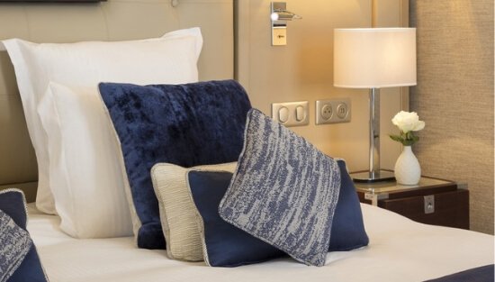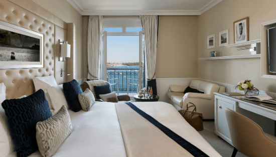 Гармония бледных тонов и залива Виконте, раскинувшегося на заднем плане. Просторная белая лакированная ванная комната. Светлые шторы и мебель из красного дерева напоминают о великих экспедициях прошлых лет. Номер Prestige Sea View площадью 40 м² предлагает элегантность и изысканность. Этот смежный номер можно открыть в другие спальни для семейного проживания.