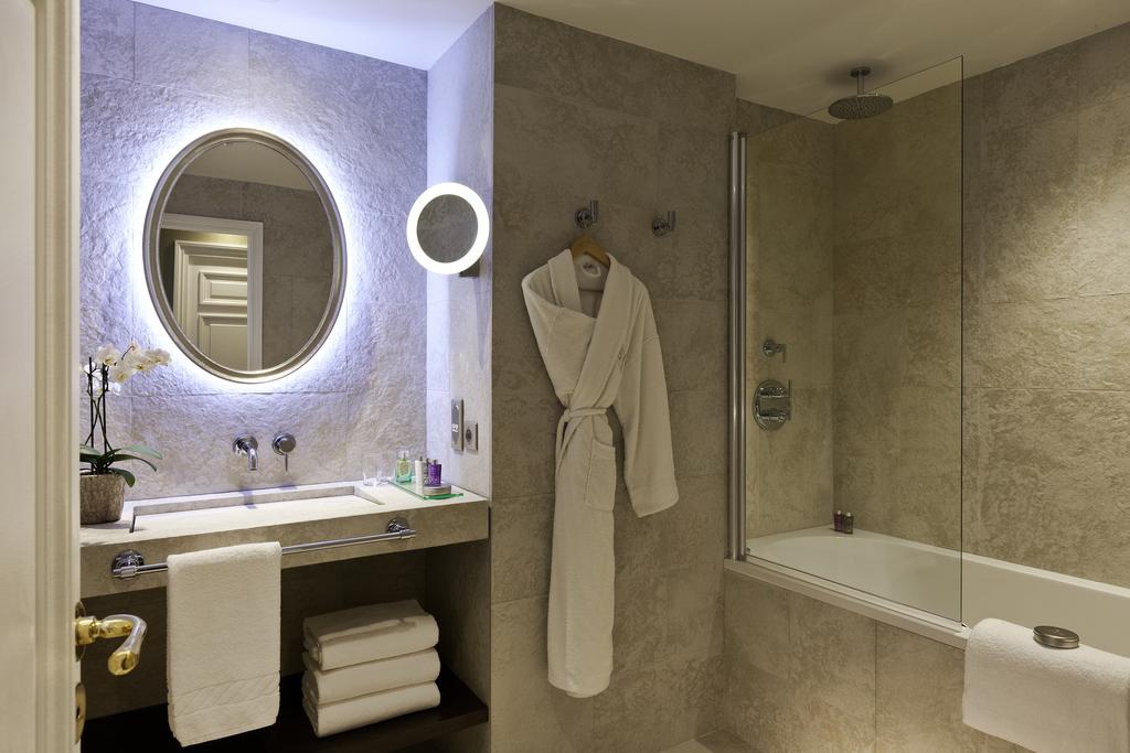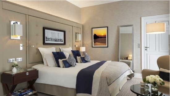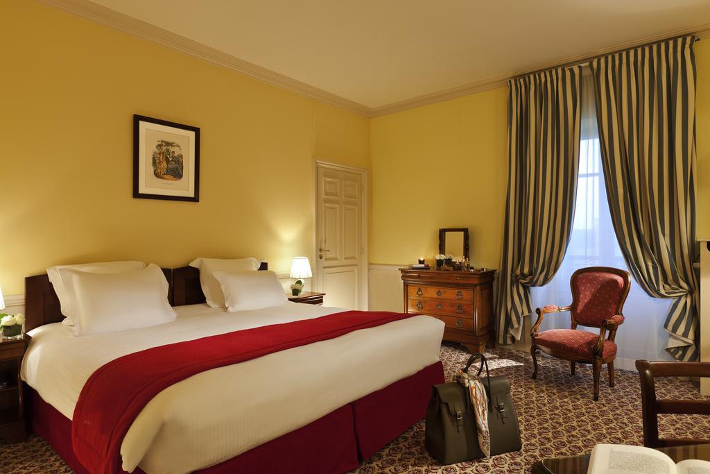 Стильная мебель и современный интерьер от Александра Данана. Уютная спальня с блестящей ванной комнатой. Великолепный вид на элегантный частный сад или Динар. Улучшенный номер площадью 25 м² в отеле Le Grand Dinard может быть оборудован дополнительной кроватью по запросу и идеально подходит для семей.