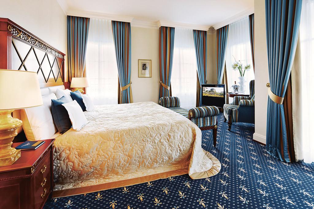 Suite: 60 м2. Историческая комната, расположена в крыле Palais. Состоит из спальни и ванной комнаты из бело-коричневого мрамора; все комнаты имеют балкон с видом в сад.