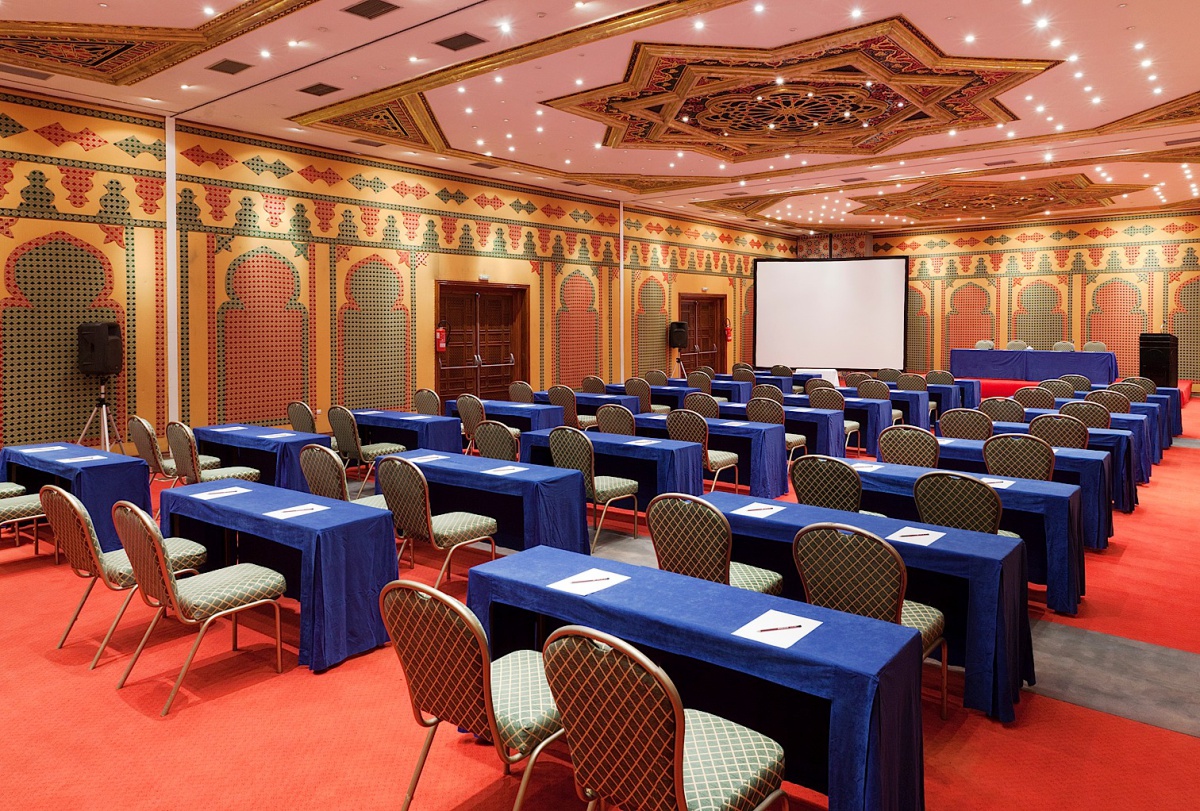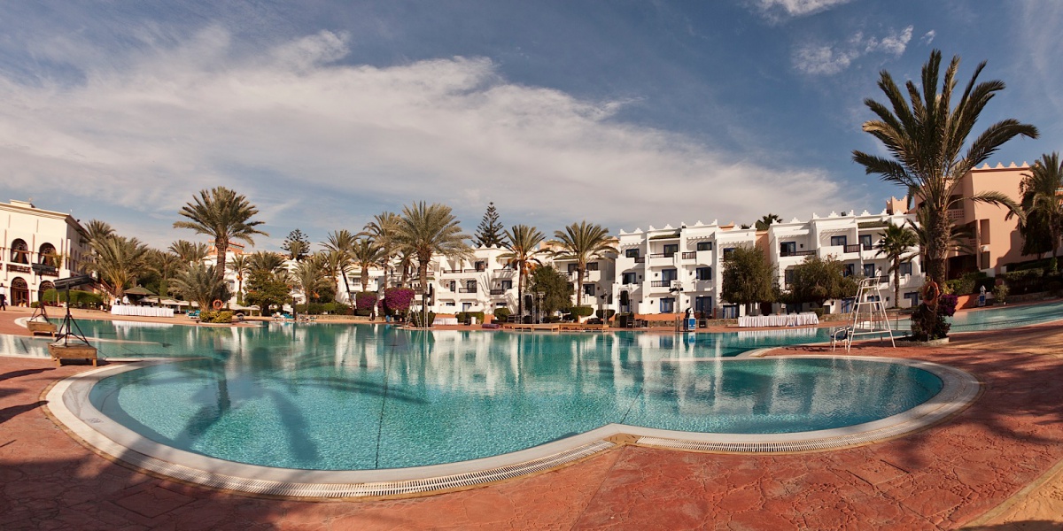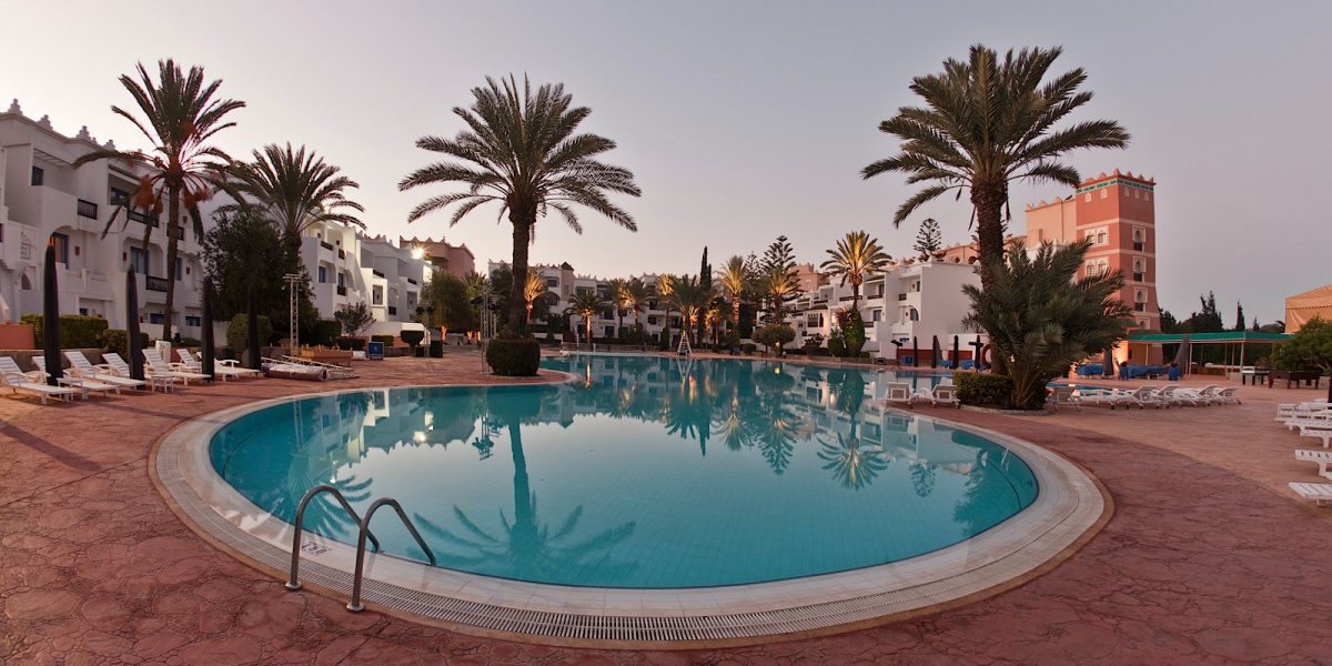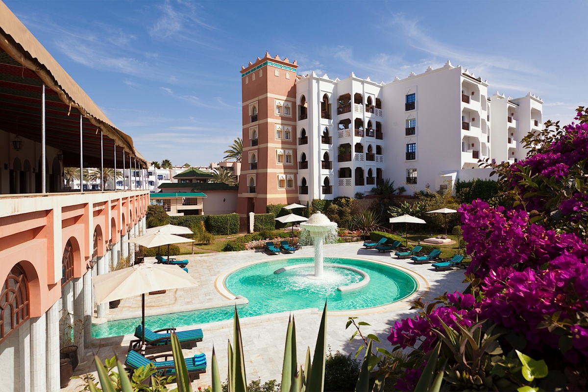 Живописный комплекс отеля Dorint Atlantic Palace расположен на побережье залива в 10 минутах ходьбы от центра города Агадир. Изогнутые мачты раскидистых пальм, узкие дорожки, застенчиво убегающие в глубину парка, пышная экзотическая растительность открывают перед взорами изумленных гостей изящное здание, стилизованное под восточные дворцы в лучших арабских и марокканских традициях. Многочисленные многоцветные башенки, узорчатые арки, причудливые своды черепичных крыш, элегантное сочетание современных атрибутов экстерьера и классических элементов, традиционно увязываемых с арабскими традициями и мотивами – каждый элемент здесь становится частью единого ансамбля, пленяющего своими причудливыми восточными орнаментами, богатой отделкой из белого, зеленого и красного мрамора, инкрустированного геометрическим рисунком, и ценных пород дерева, мозаикой в берберском стиле и загадочными арабскими фресками. Под стать этому великолепию и уютные номера гостиницы, оформленные в пастельных тонах.
