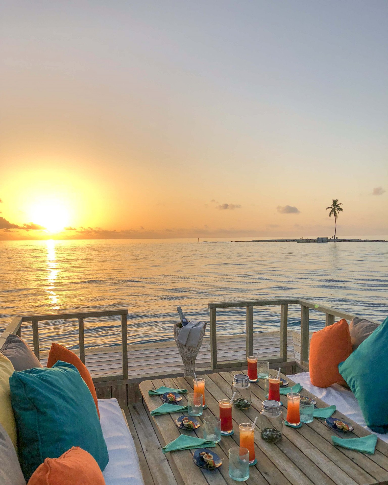 - Надводная терраса для загара с катамаранами, шезлонгами, кушетками и прямым выходом к океану.