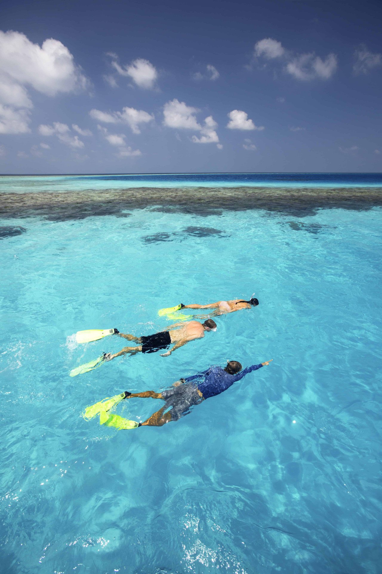 - Площадки для загара на уровне моря с шезлонгами и катамаранами, обеспечивающие прямой доступ к кристально чистым коралловым садам и удивительной морской жизни.