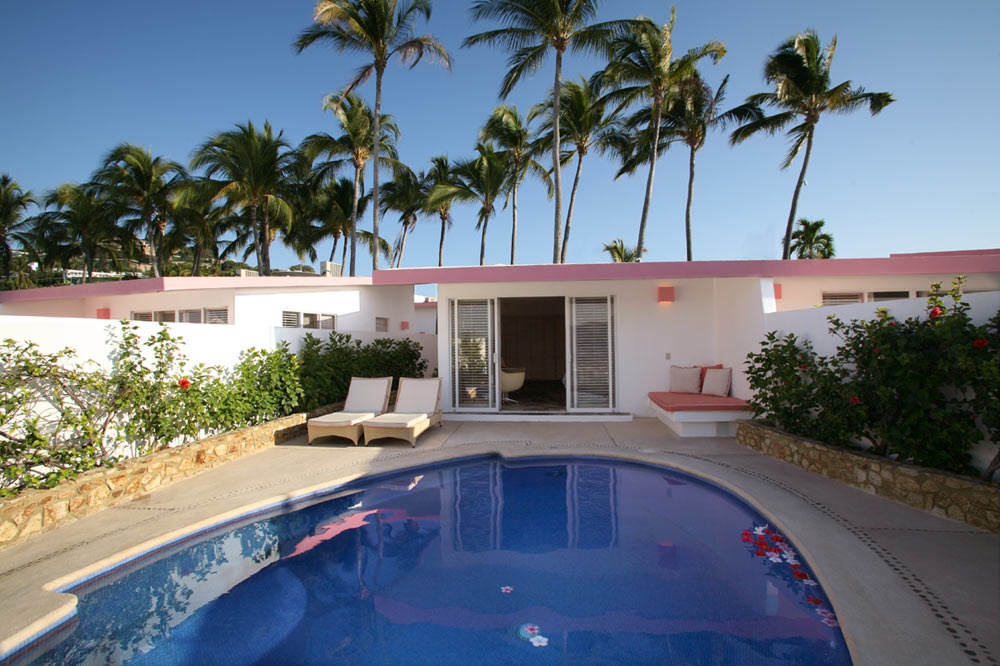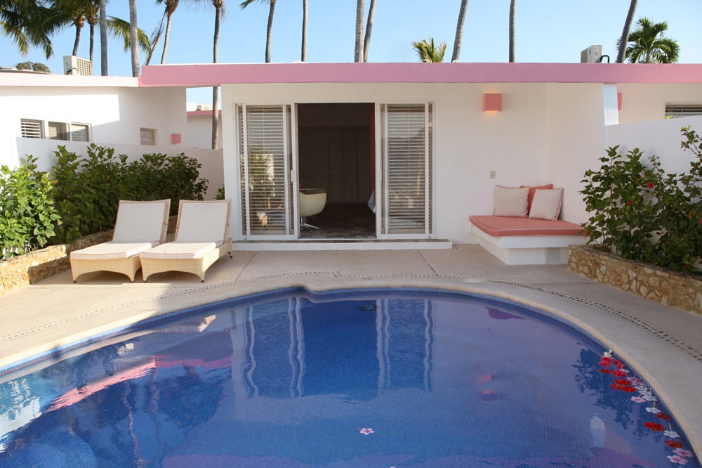 Casitas with private pools — расположены на втором или третьем уровне, с видом на море, состоят из спальни, ванной комнаты, балкона или террасы, частного бассейна.