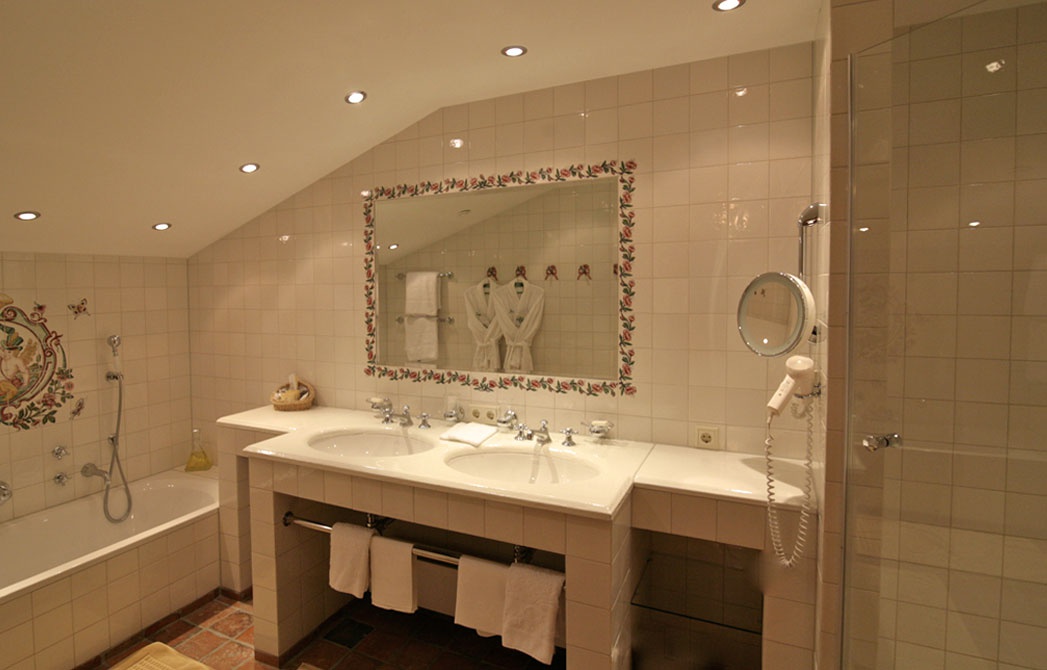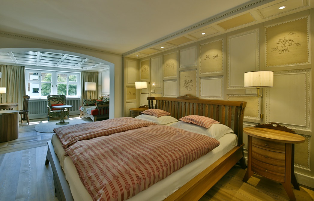 Herzog Suite: 55 кв.м — состоит из: спальни, гостиной, ванной комнаты с джакузи и душем. В номерах – камин или тирольская печь, видеомагнитофон.