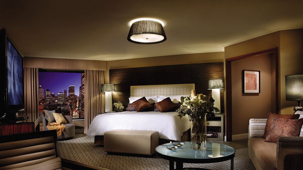 Executive City Harbour-View Suite: 53 м2. Номер с видом на городскую панораму и с частичным видом на "Сиднейскую бухту" (Sydney Harbour) расположен на 34 или на 35 этаже. Состоит из спальни с кроватью king-size, гостиной, ванной комнаты с мраморной отделкой, гостевой туалетной комнаты. Максимальное размещение - 3 взрослых или 2 взрослых и 1 ребенок.