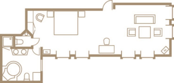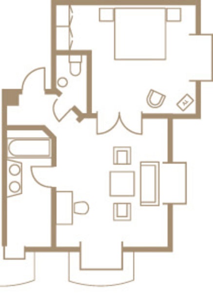 Deluxe Suite: 57-68 м2. Состоит из спальни с гостиной зоной, ванной комнаты, с видом на озеро.
