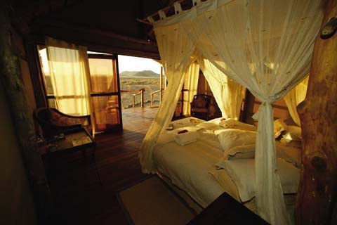 Гостей лоджа ждет путешествие на воздушном шаре над живописными, переливающимися всеми оттенками красного песчаными дюнами, сафари на крытых лендроверах, пикники на закате на горных плато, экскурсии к местным племенам и пешие прогулки по пустыне.
