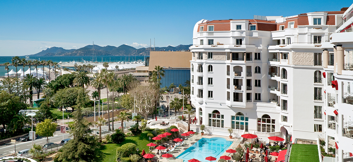 Отель расположен на бульваре Круазетт (Bboulevard de la Croisette), напротив Дворца Фестивалей, в 15 минутах езды от аэропорта Cannes-Mandelieu, в 5 минутах езды от ж/д вокзала Канн и в 30 минутах езды от международного аэропорта в Ницце.