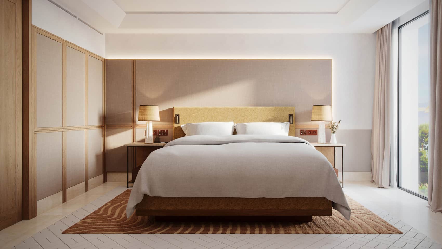 Одна кровать размера «king-size» или две двуспальные кровати, одна детская кроватка по запросу (только номер с кроватью размера «king-size»)