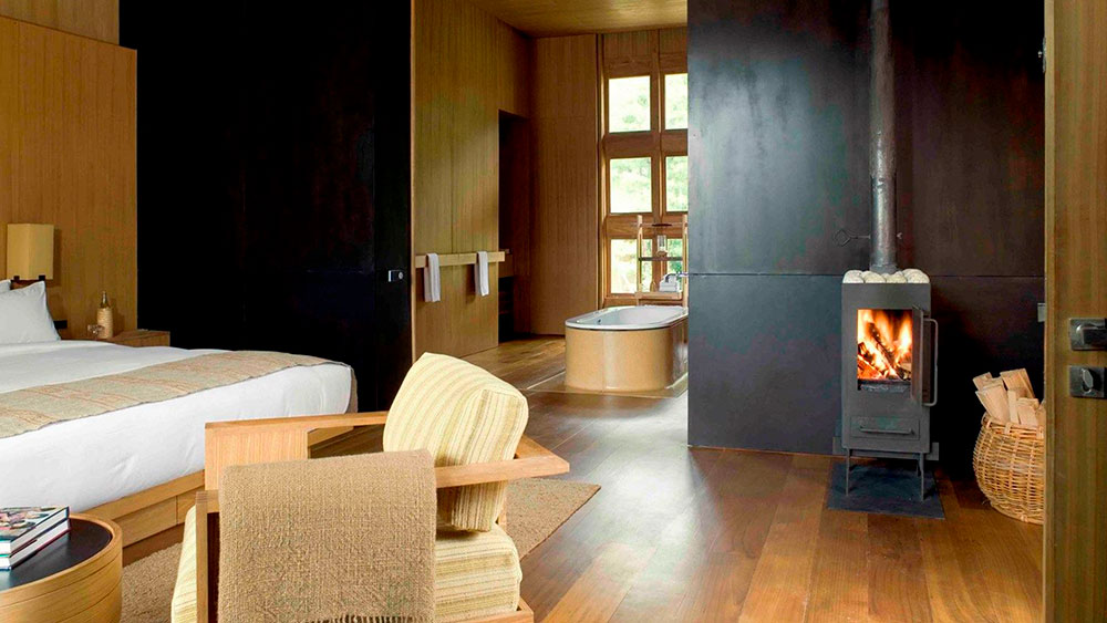 Все номера просторны, выполнены в аскетичном буддийском стиле из природных материалов. Минимализм, экологичность и в то же время забота о максимальном удобстве гостя – эта идеология сети Aman нашла свое отражение и в дизайне номеров этого уютного горного отеля. Стены номеров оббиты панелями из натурального дерева спокойных светлых оттенков. В каждом номере также присутствует, бухари, народная бутанская дровяная печь. Бесшовный мозаичный пол в ванной комнате – терраццо – выполнен исключительно из натуральных материалов. В ванной комнате обязательно будет двойной туалетный столик, душ и туалет. В самом номере есть уютная гостиная зона с креслами у окна, что бы Вы смогли в уединении насладиться поистине сказочной красотой местной природы. Из окон открывается потрясающий вид на долину и монастырь Gangtey Goemba, возведенный еще в 16 веке.