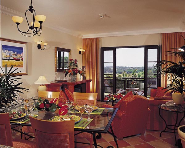 Luxury Suite: 55 м2. Двухуровневый номер, включает спальню, гостиную с обеденной зоной и диваном, который может служить дополнительным спальным местом, ванную комнату, гостевую ванную комнату, балкон с видом на курорт, сады и океан. Максимальное размещение - 3 взрослых или 2 взрослых + 2 ребенка до 12 лет.