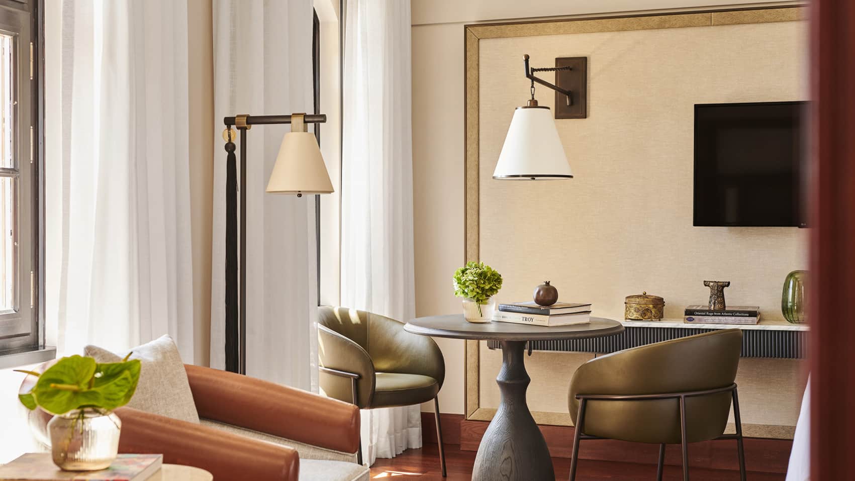 В отеле 65 номеров различных категорий, включая 3 вида Guest Rooms и 8 видов Suites. Интерьеры просторных номеров выполнены в утонченном стиле, сочетающем восточную роскошь и современный европейский комфорт, а произведения искусства, которыми украшены номера, представляют несколько эпох турецкой культуры – от Оттоманской империи до работ современных мастеров.