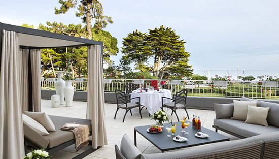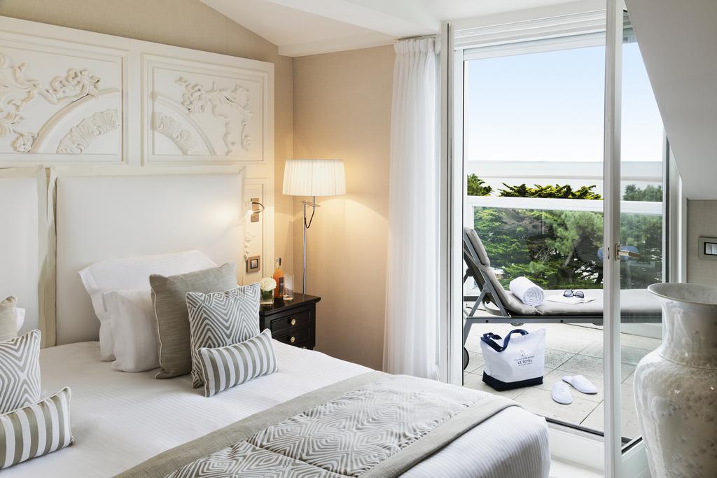 Отремонтированный в золотых и белых тонах Шанталь Пейра, номер Делюкс площадью 23 м² имеет прекрасную ванную комнату и скульптурную стену, а также роскошь стильной мебели, прозрачных штор и кремового ковра. Терраса или балкон выходят на виллы и соляные заводи Ла-Боля.