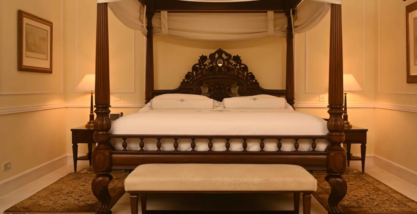 Флагманский Imperial Suite достигает около 229 м² и включает отдельные гостиные зоны, террасу, спальню с кроватью с балдахином и спа-элементы (сауна, паровая, джакузи), что подчеркивает дворцовый формат проживания.