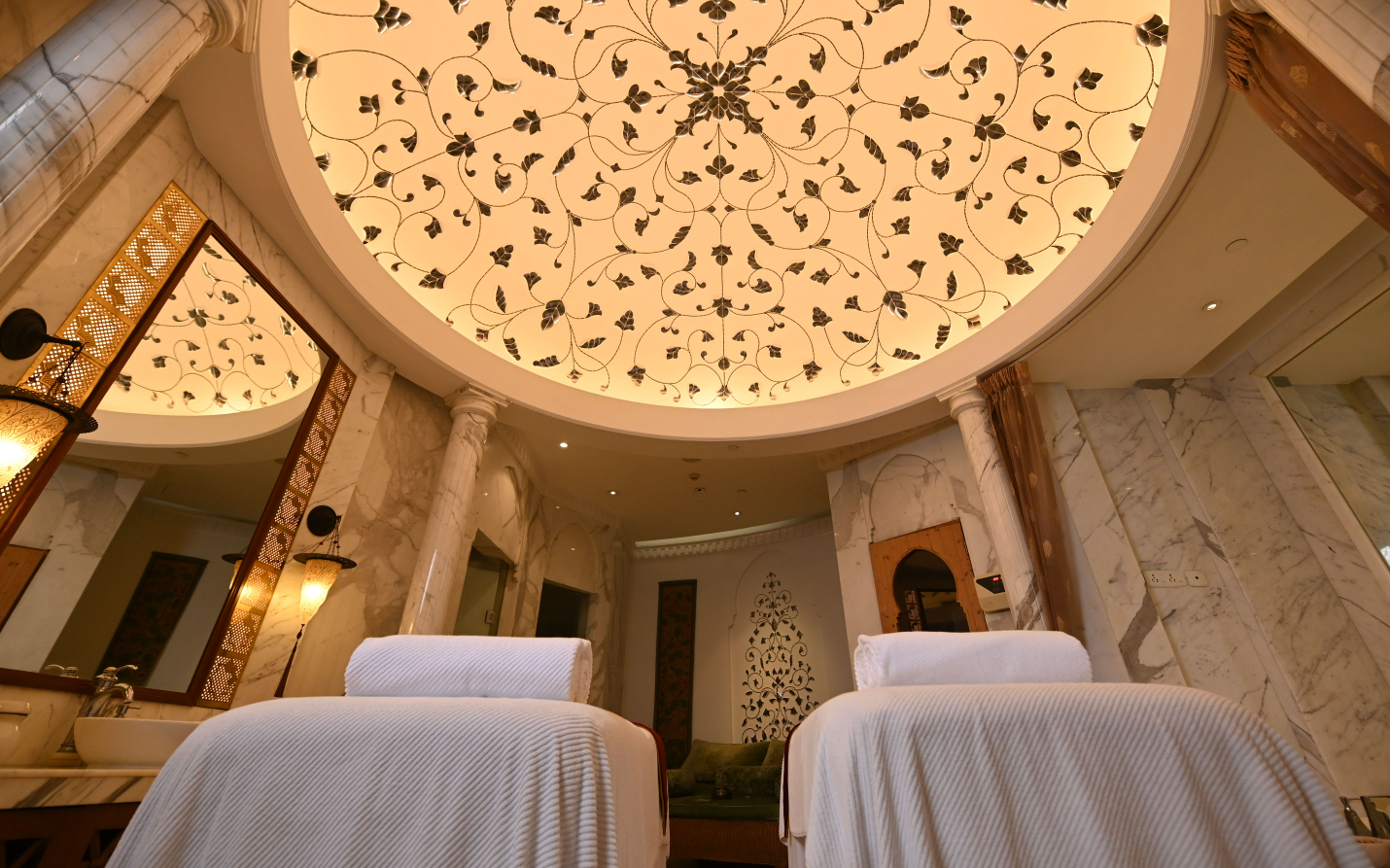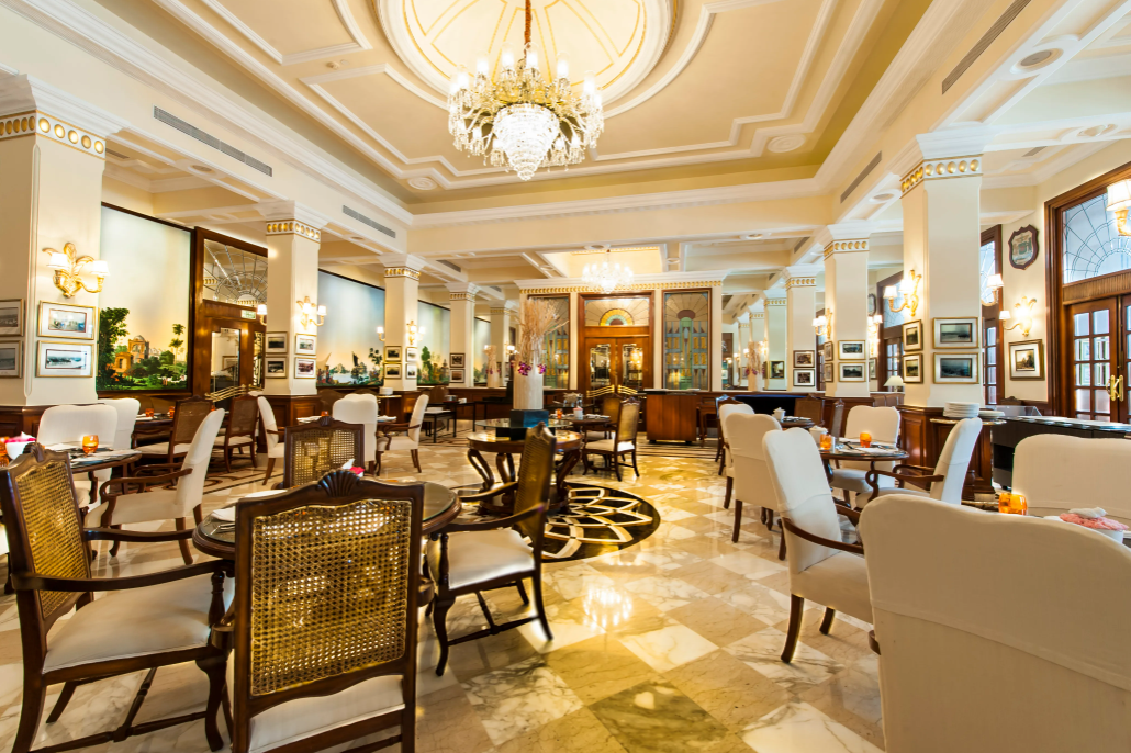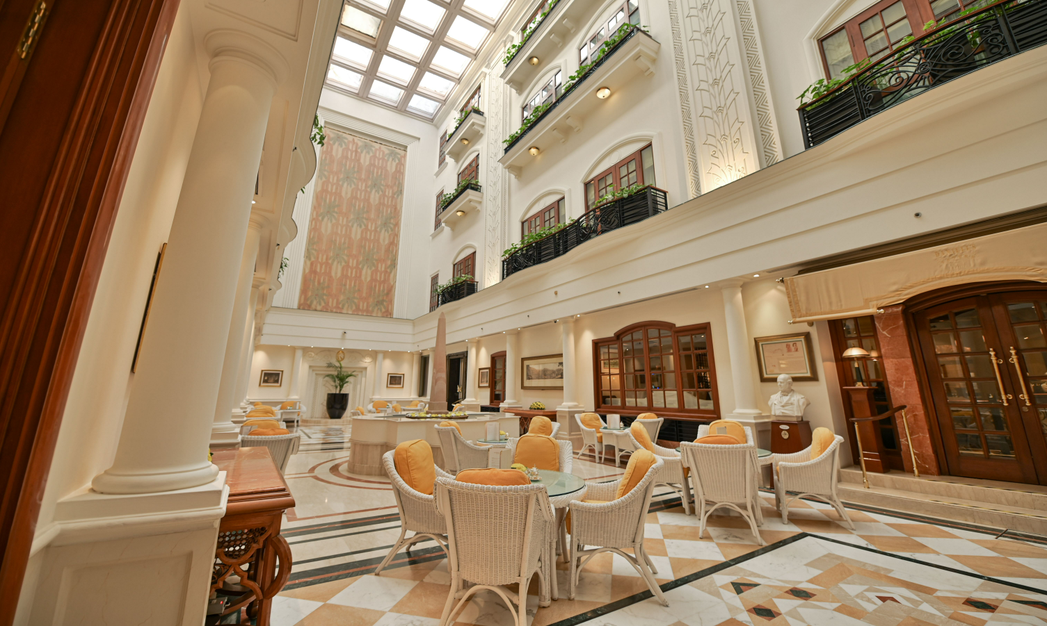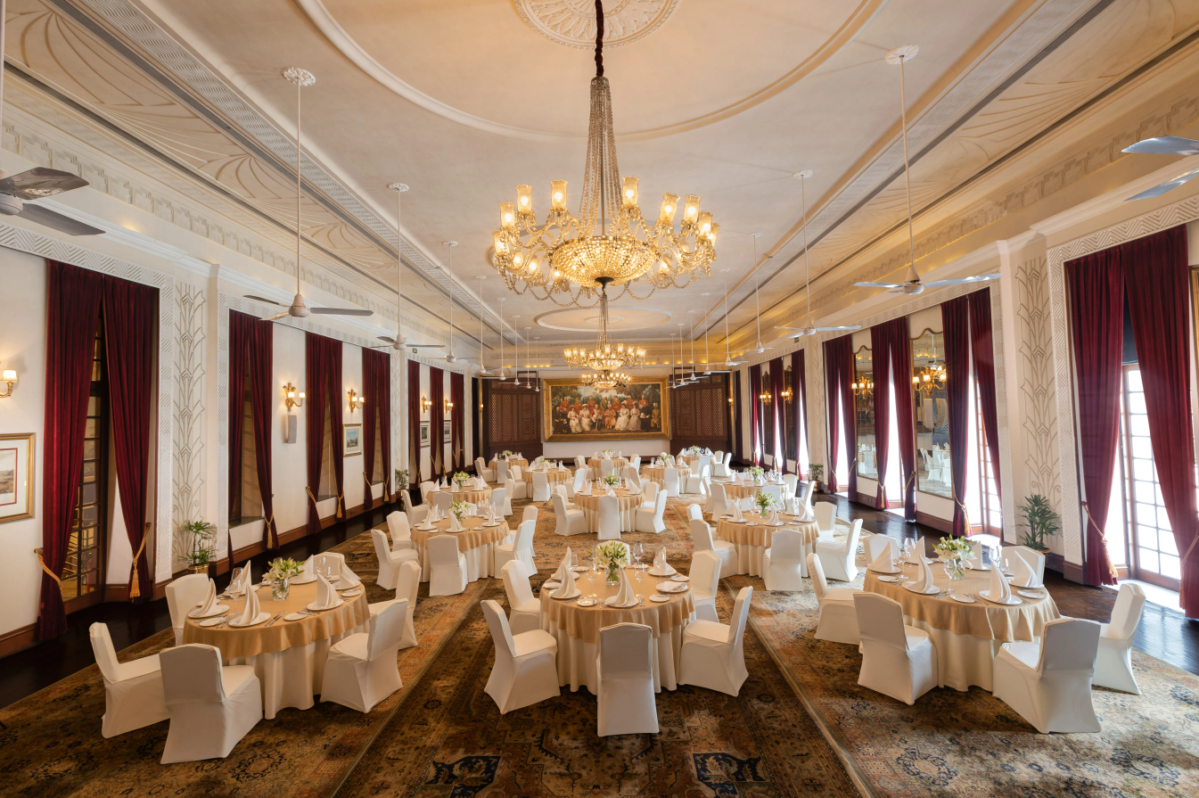 Отель создаёт атмосферу «дворца прошлого», где каждая деталь — от мраморных колоннад и персидских ковров до антикварных элементов декора — подчеркивает историческое наследие и культурную ценность пространства. Интерьеры наполнены произведениями искусства и отсылают к эпохе британской Индии, при этом сохраняется высокий уровень современного комфорта.