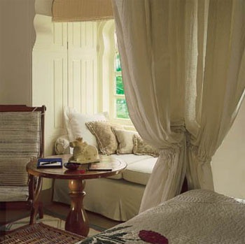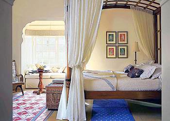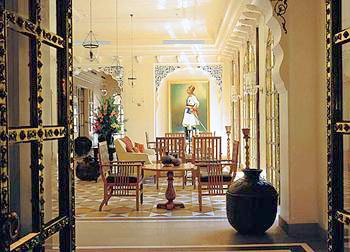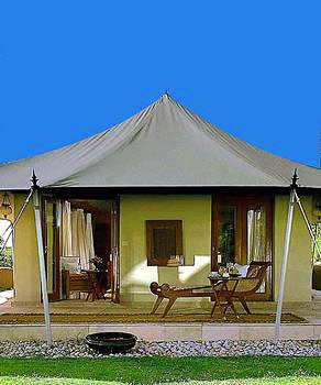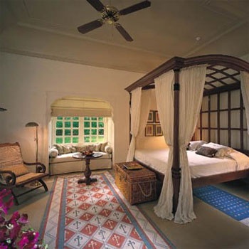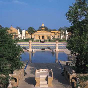 Его архитектурный стиль с причудливыми арками и резными колоннами напоминает о роскошных дворцах легендарной династии Раджпутов. Отель представляет комплекс вилл с собственными бассейнами, шатров с открытыми верандами и номеров категории Premier Room, расположенных вокруг внутреннего дворика. Внутренние интерьеры, выполненные в пастельной цветовой гамме, продуманы до мельчайших деталей и украшены произведениями индийских мастеров, резьбой по дереву и камню и декоративными тканями. Выложенные мрамором ванные комнаты выходят прямо в собственный сад.