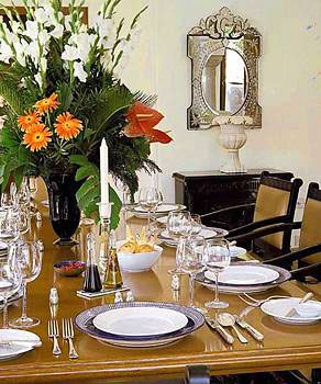 Для ужинов на свежем воздухе под бесчисленными звездами восточного неба в сопровождении живой музыки и индийских захватывающих танцев для Вас - внутренний двор Surya Maha, с факелами, горящими на капителях белоснежных колонн.