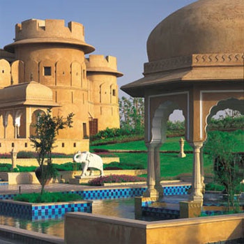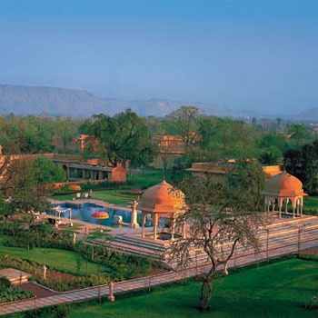 The Oberoi Rajvilas, открытый в 1997 году, расположен среди живописного благоустроенного сада с живописными фонтанами и водоемами, усеянными цветами лотоса.