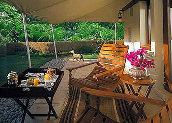 Luxury Tent (45 кв.м) — номер, располагающийся в отдельном шатре с открытой верандой, состоит из спальни (с кроватью king-size) с гостиной зоной и ванной комнаты с ванной, выходящей прямо в сад.