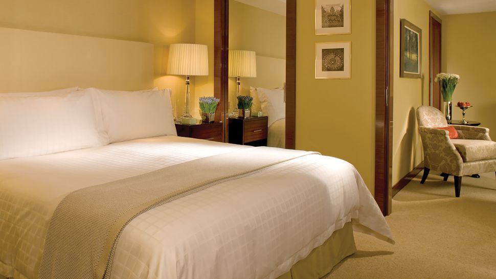 Deluxe Room: 35 м2 . Расположен с 3 по 9 этажи, выходит на город, состоит из спальни с кроватью king-size или двумя кроватями twin и зоной отдыха, гардеробной, ванной комнаты с ванной душевой кабиной. Максимальное размещение - 2 взрослых.