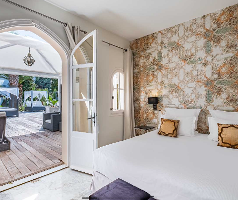 Отель располагает двумя отдельно стоящими виллами Le Palais и Les Jardins, выполненными в мавританском стиле. В помещениях вилл – элегантные интерьеры, выдержанные в светлых тонах, с полами, выложенными плиткой или отделанными деревом, изящной мебелью, изысканными элементами декора, кроватями, украшенными витыми железными и резными деревянными стойками, большими, от пола до потолка, окнами и террасами с великолепным видом на море и парк.